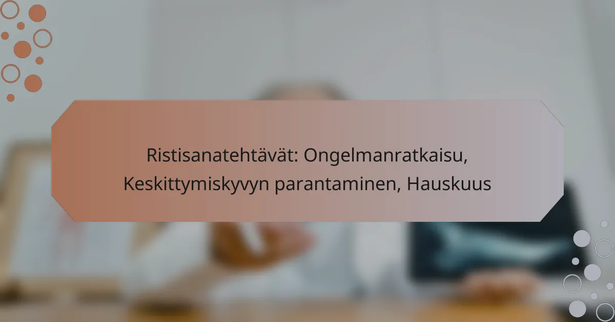 - Ristisanatehtävät: Ongelmanratkaisu, Keskittymiskyvyn parantaminen, Hauskuus